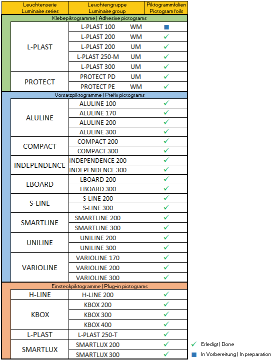 An overview of which luminaire series have already been converted to 4 arrows (left/right/bottom/top arrow) can be found below.
